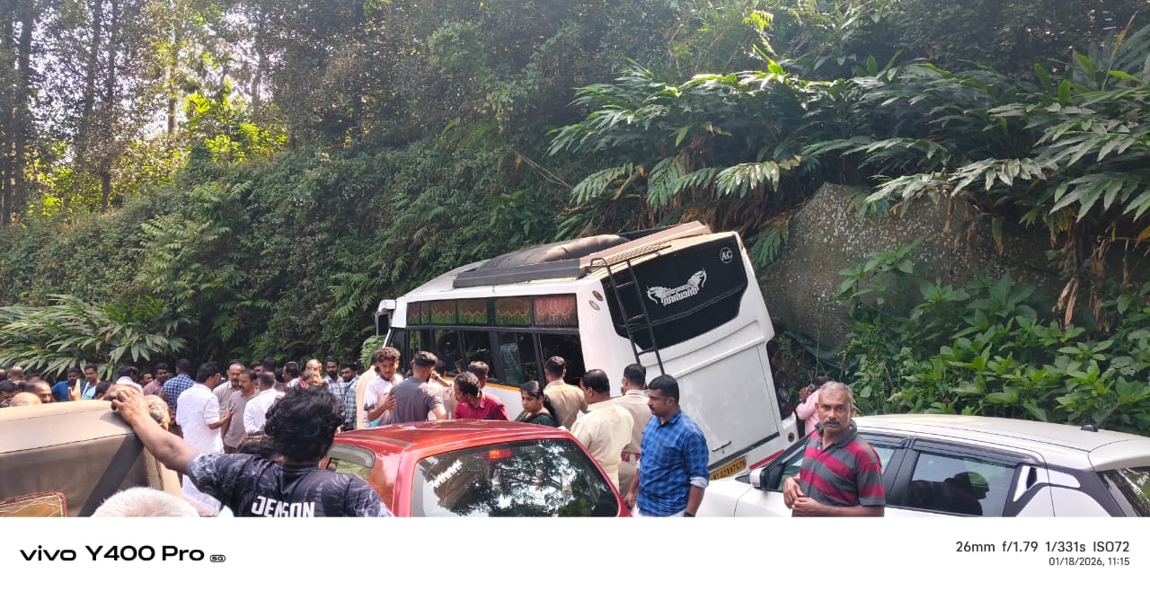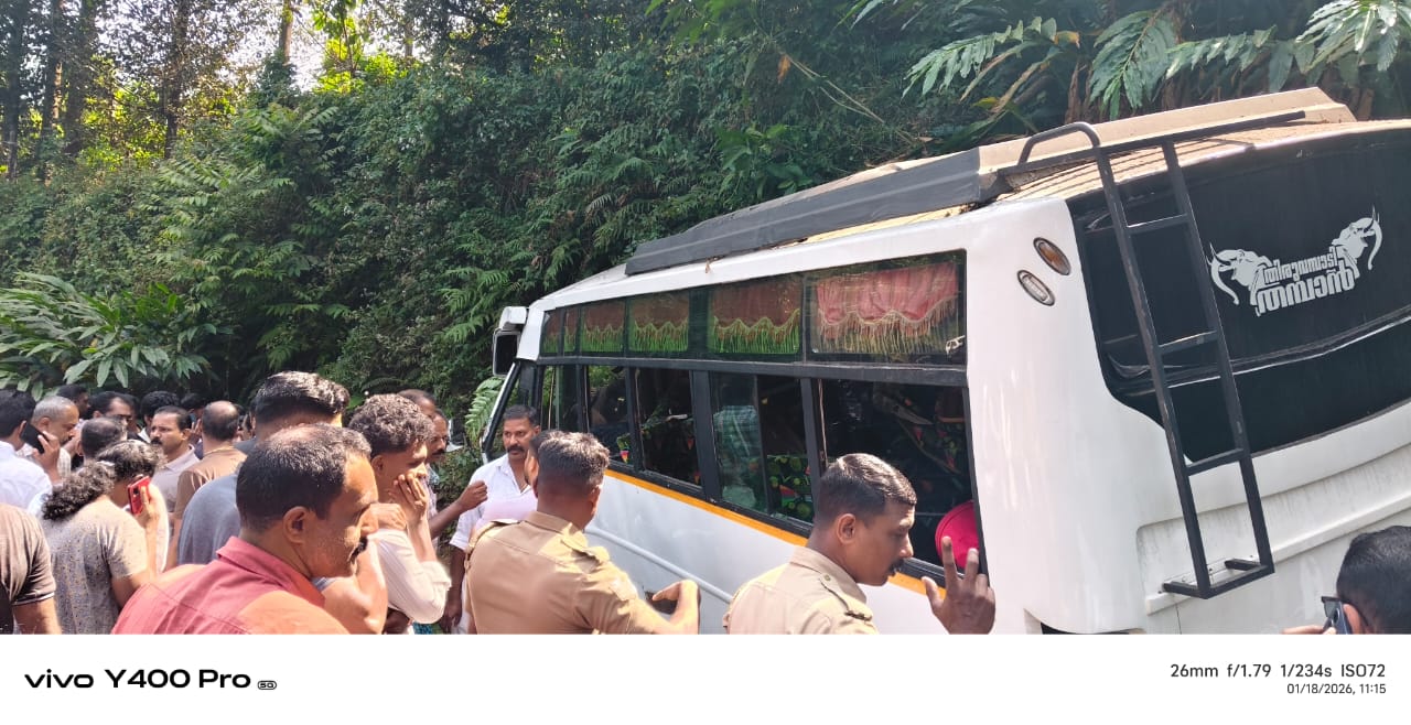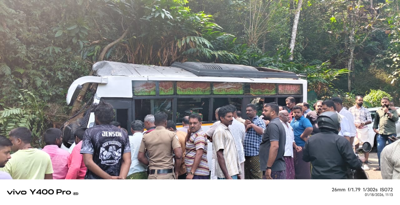 ഇടുക്കി നാരകക്കാനത്തിന് സമീപം അമലഗിരി പടിയിൽ ടൂറിസ്റ്റ് ബസ് അപകടത്തിൽപ്പെട്ട്നിരവധി പേർക്ക് പരിക്ക്. തിരുവനന്തപുരം നെടുമങ്ങാട് നിന്നും ഇടുക്കി വഴി രാമക്കൽമേട് ടൂറിസ്റ്റ് കേന്ദ്രങ്ങളിലേക്ക് പോയ സംഘമാണ് അപകടത്തിൽപ്പെട്ടത്. ഗൂഗിൾ മാപ്പ് നോക്കി വഴിതെറ്റിപ്പോയാണ് അപകടം ഉണ്ടായത്.